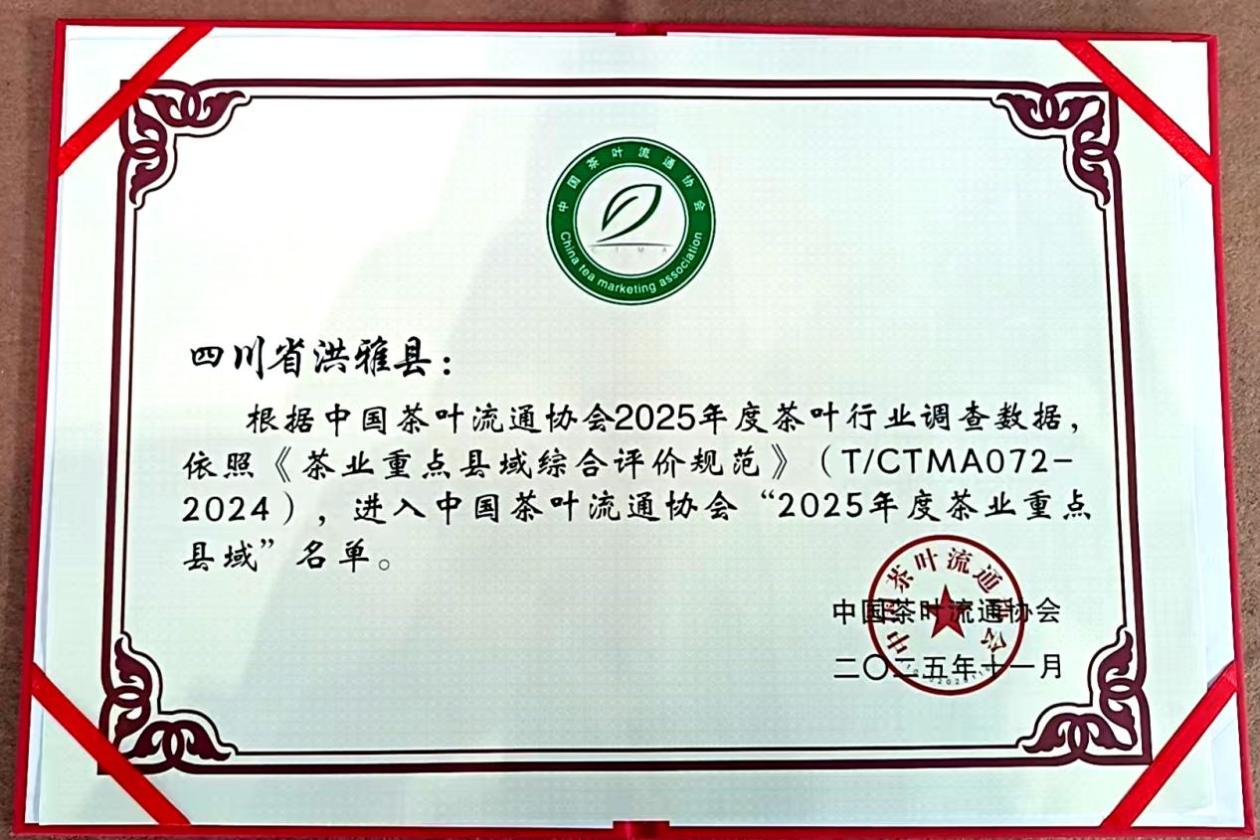 近日,在浙江新昌召开的第二十一届中国茶业经济年会上,四川省洪雅县再度荣登“2025年度茶业重点县域”榜单。这已是该县连续第七年获此殊荣。